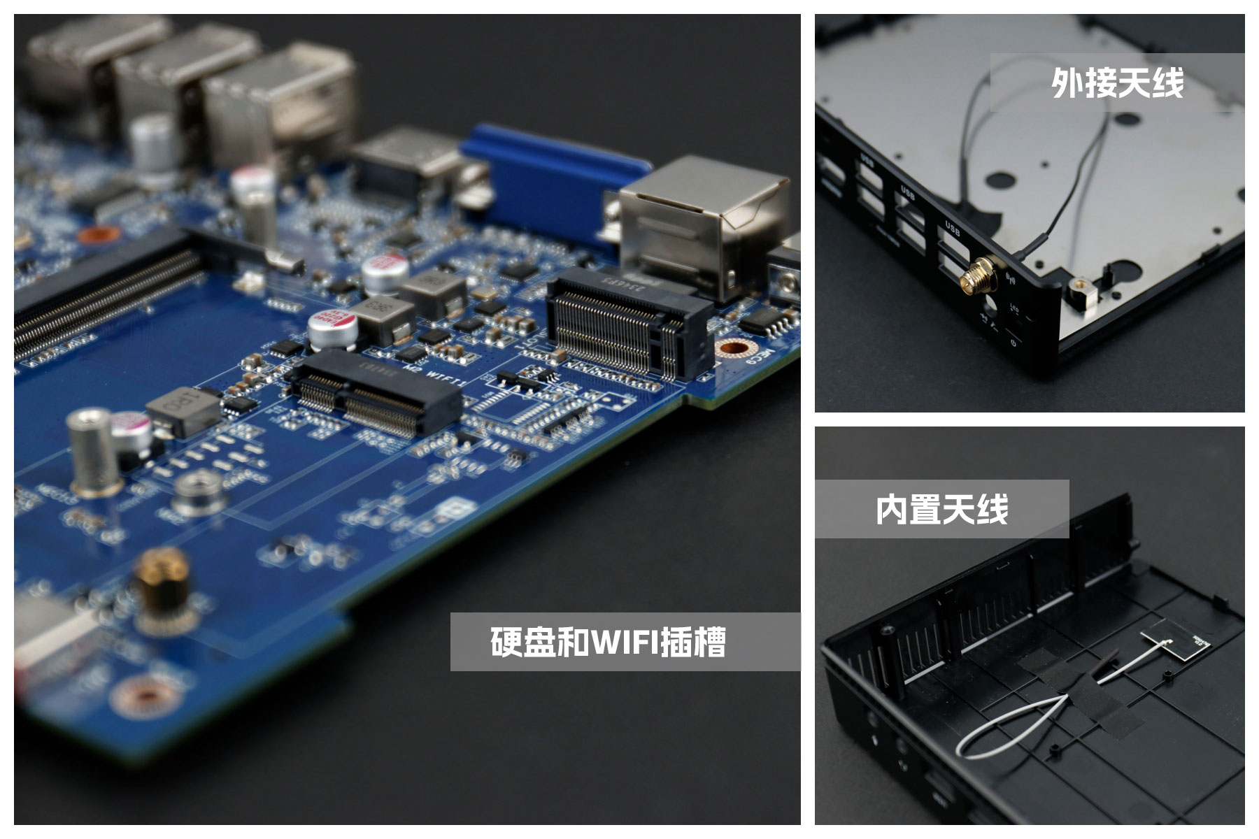918博天堂(中国区)官方桌面云终端Y-BOX S2主板上配备了 1个 M.2 固态硬盘位,接口规格为 PCIe3.0 标准,匹配标准的 2280 规格硬盘。一侧还有一个M.2接口,匹配2230长度的WIFI/BT模块插槽,WiFi模块可以连接的是外接天线,增强信号,同时也可以内接天线,灵活应用,支持Wi-Fi 5/6/6E网络。