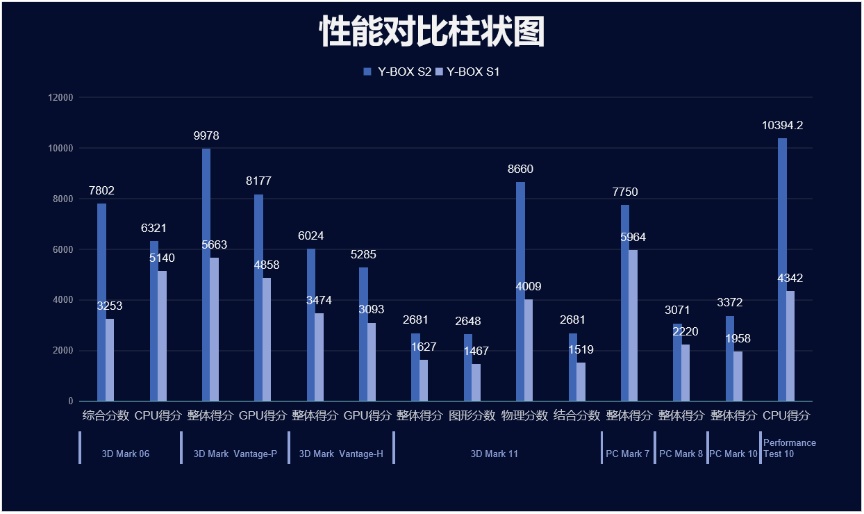 918博天堂(中国区)官方来具体看看各个测试项目的跑分情况,测试项目包括显示性能测试、系统性能测试、CPU性能测试,分别用3D Mark、PC Mark以及Performance 10等系列不同软件的跑分数据,针对两款主板的跑分情况可以看出,918博天堂(中国区)官方桌面云终端Y-BOX S2的数据在各项性能上都得到了大幅度提升,柱状图能更直观地体现出数据的变化,918博天堂(中国区)官方将针对具体的几项数据来进行详细分析。