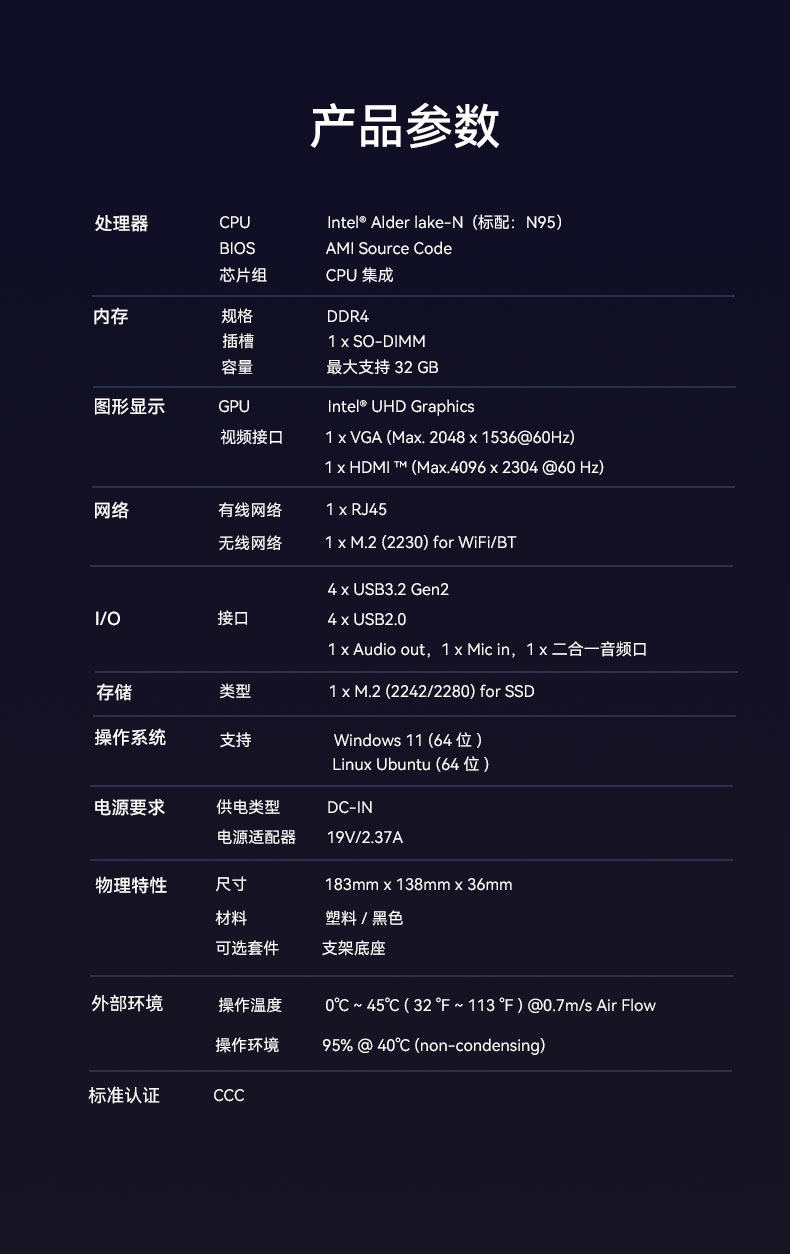 918博天堂(中国区)官方桌面云终端Y-BOX S2作为全新一代的虚拟化主机产品,凭借其出色的便携性、优秀的办公娱乐体验和高效节能的环保设计,在学习、办公和娱乐等各个领域展现出卓越的适应性,可以广泛应用在教育、办公、金融、家用、医疗等领域,为用户带来丰富多彩的数字化体验,针对针对客户个性化需求,支持ODM/OEM/JDM定制化服务。Y-BOX S2详细的产品性能参数如下: