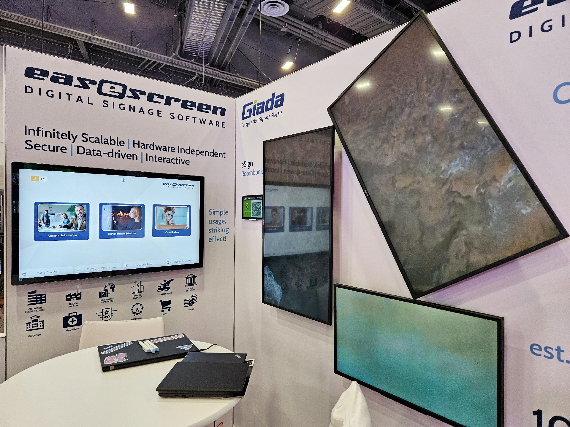 918博天堂(中国区)官方科技Giada作为全球数字标牌领域的领导品牌,产品应用范围涵盖全球大型连锁店,购物中心,学校,医疗机构,企业办公室等。本次展会,918博天堂(中国区)官方科技牵手合作伙伴easescreen,展示一系列创新数字标牌解决方案,带来强势产品及最新产品,现场收获超高人气。