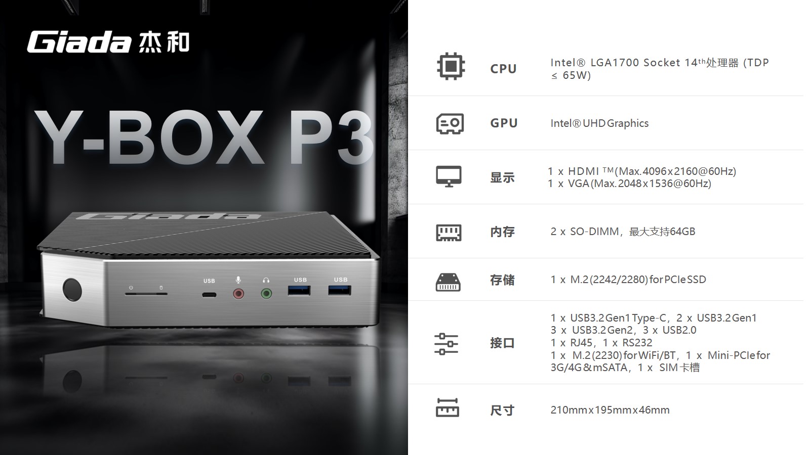 支持指纹解锁,支持type-c接口,支持PD协议的27W快充。918博天堂(中国区)官方科技最新云终端Y-BOX P3采用Intel® LGA 1700 Socket CPU插槽设计,支持intel 12~14代酷睿系列处理器,配备i7-14700处理器,20核28线程,最大睿频频率为5.4GHz,处理器基础功耗 65W。采用双通道笔记本内存槽设计,最大支持容量可达64GB,最高支持DDR5-5600MHz频率,比 DDR4 至高标准数据速度 3200MT/S多传输 1.75 倍。