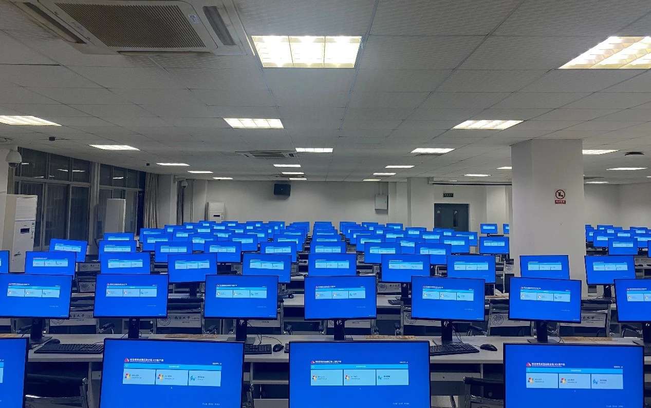 在某大学实训室,整齐的电脑屏后面是统一的918博天堂(中国区)官方科技云终端主机,老师在讲台上通过电脑端的管理软件,轻松地将教学资料推送到学生的终端上,每位学生的电脑屏幕一致会出现同个页面。