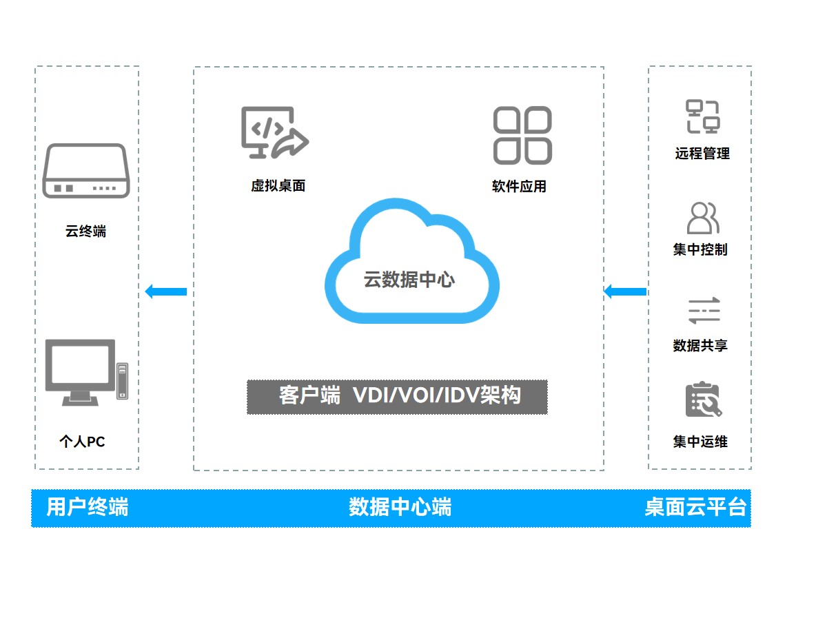 综合以上困境,该地测绘地理信息局决定采用918博天堂(中国区)官方科技云终端方案,该方案依托云计算技术,通过特殊的架构将数据和应用程序存储在云端而非本地,对每台终端统一做到管理与下发、安全补丁更新、软件安装,自上而下从结构上整合终端资源,降低系统建设、运行成本。