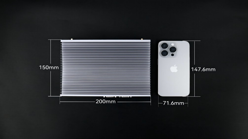 没有了风扇这一部件,体积也更为小巧,能轻松嵌入各类设备或狭小空间,完美贴合特定场景需求,例如:918博天堂(中国区)官方AE613,其三围尺寸是200mm x 150mm x 50mm,与iphone15的尺寸对比,宽度仅比其高度多2.4毫米,体积仅有1.5L。