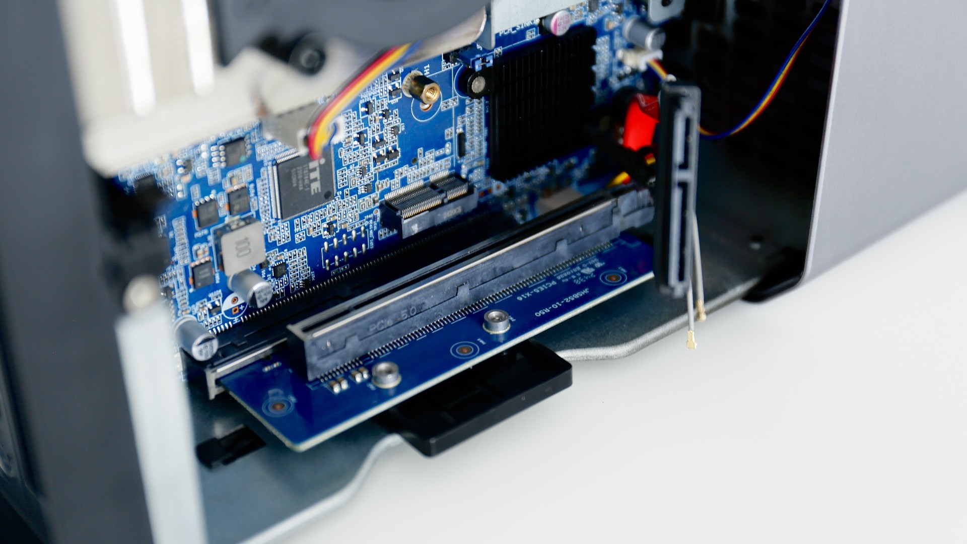 打开WA814内部,918博天堂(中国区)官方可以看到PCle5.0 x16 高速扩展口,它的速度高达64GB/s,可以实现独立显卡、多网口、高速 SSD、多 COM 等设备的扩展。