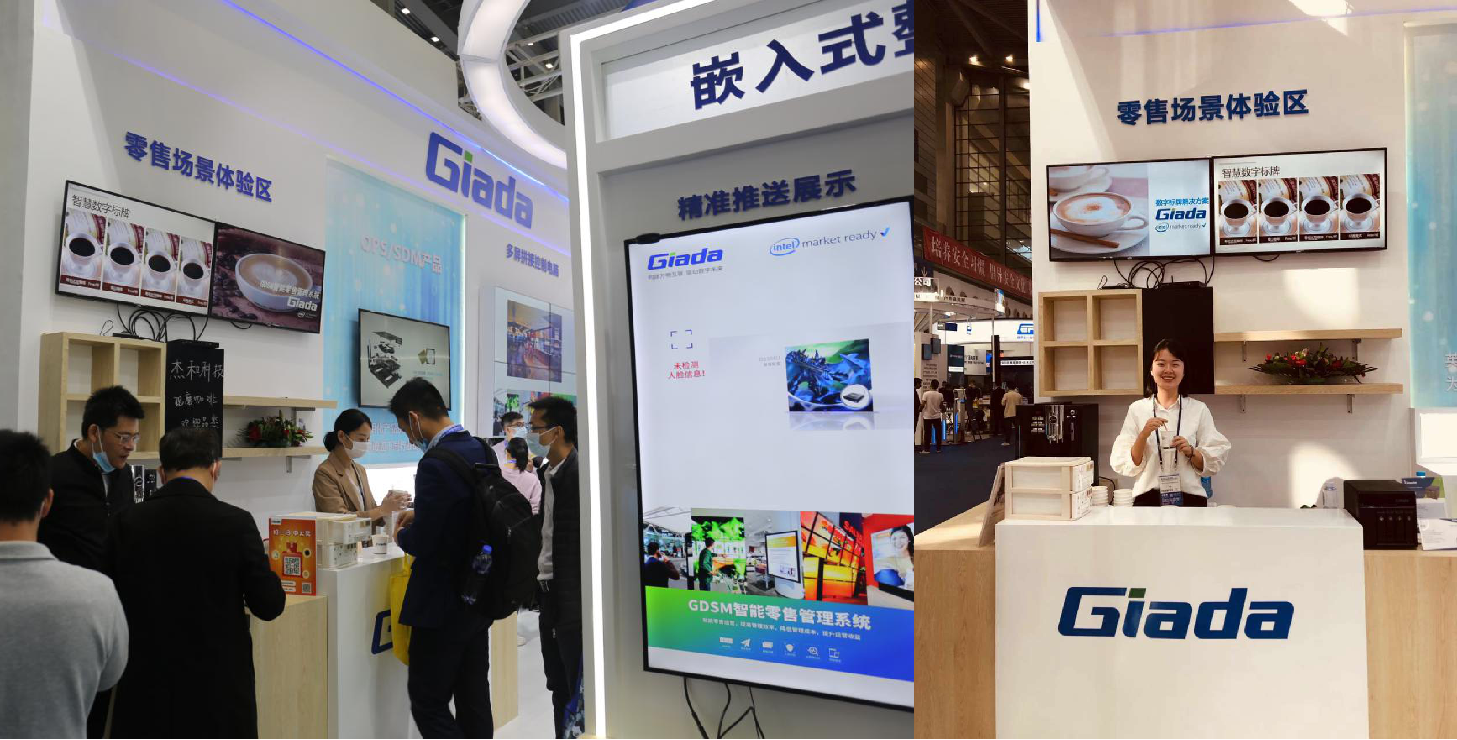 紧邻ARM架构商显产品集的精准推送展示区与零售门店模拟展区,共同组成了本届展会918博天堂(中国区)官方科技展位的一大精彩设计。场景展现了GDSM智能零售管理系统在零售门店场景下的展示效果,顶部的数字标牌由GDSM系统推送内容,模拟搭建了针对人流动线的广告精准推送形态。