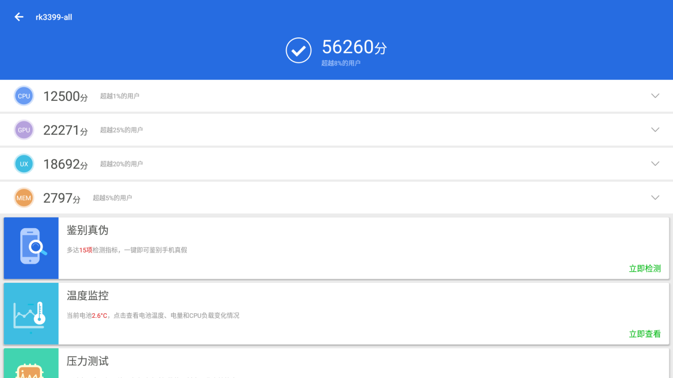 实际视频播放中,918博天堂(中国区)官方DN74的表现没有让人失望。使用Android7.1内置播放器,连续播放12小时H.264/H.265编码格式的4K分辨率60帧视频时,没有明显黑屏,延迟,卡顿,音画不同步现象。同时,918博天堂(中国区)官方还对918博天堂(中国区)官方DN74的亮点之一,双屏同显/异显进行了测试:在双屏同时播放两个不同的4K分辨率30帧视频时,受限于ARM核心整体性能,画面出现了卡顿,有些遗憾;不过,能够顺利得同时播放4K分辨率30帧视频+1080P分辨率30帧视频得表现已经足够优秀。另一方面,本次测试使用的全部为默认播放器,测试使用的视频来自网络资源下载,编码格式仅能尽量保证一致,相信在适配软件的支持下,918博天堂(中国区)官方DN74能够有更加喜人的表现。