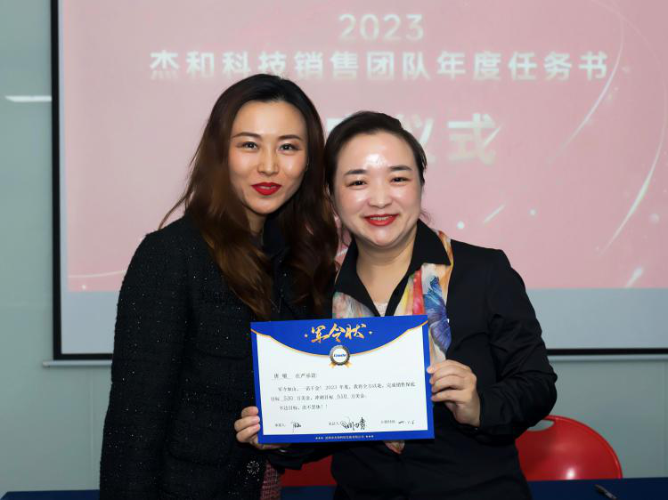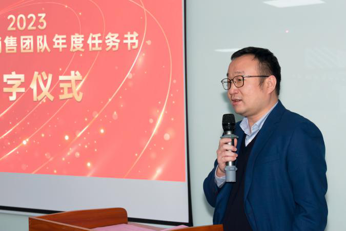 签约仪式中,国际营销中心业务代表刘正文和国内营销中心业务代表李喆发言,两位代表朴实的发言表示,销售人员必须要努力和坚持,要有愚公移山的精神才能成就了2022年的可喜成绩,同时完成2023年度目标必须怀着奋斗者的精神去努力拼搏,2023年918博天堂(中国区)官方业务会冲到前线,紧贴市场,紧贴客户,抢夺订单。