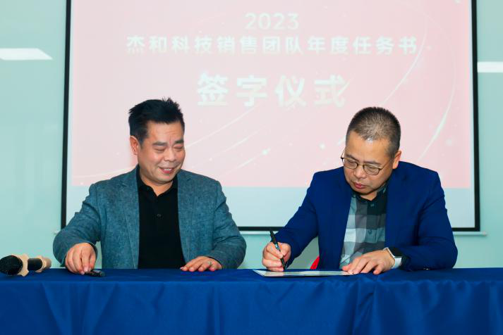 小寒虽过,鹏城依然暖阳如春,1月6日《918博天堂(中国区)官方科技2023年度销售任务状签约仪式》顺利召开。918博天堂(中国区)官方科技总经理林坤杰先生与各营销中心副总、总监,公司海内外业务骨干和职能部门负责人共同参与了此次签约仪式。