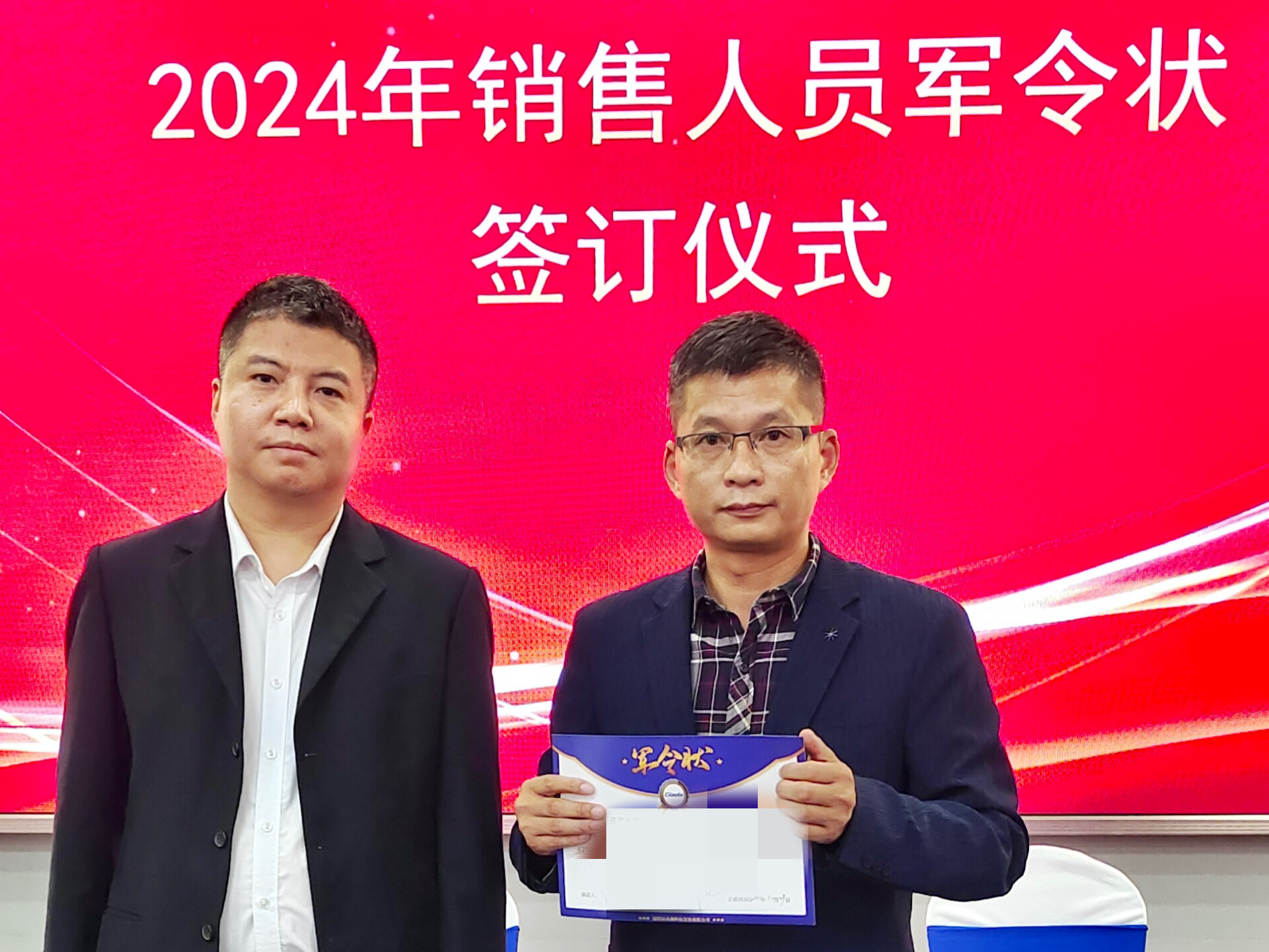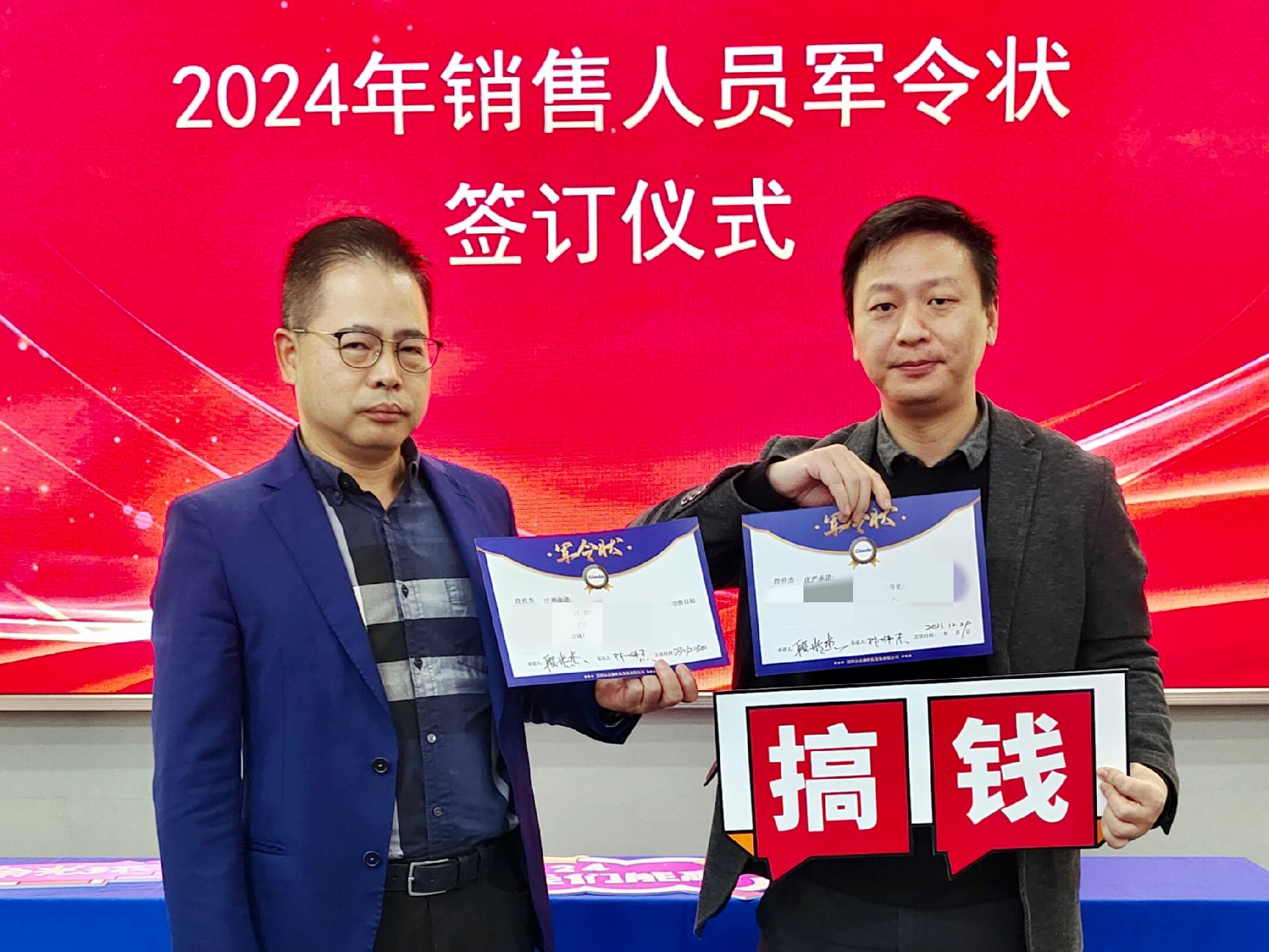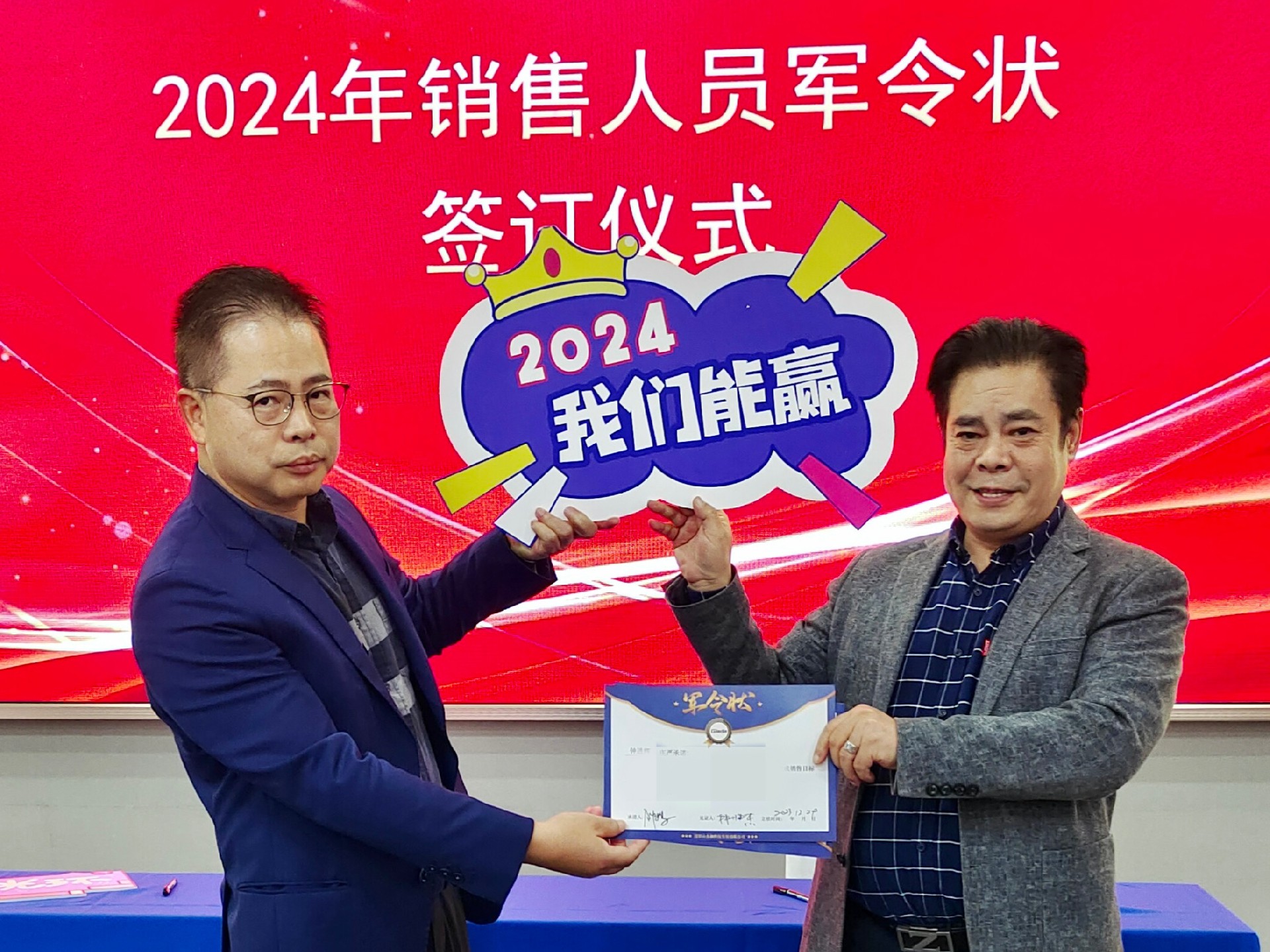 2024公司年度战略目标确立,言出必行,使命必达,国际/国内销售团队为了共同的目标开始军令状签约仪式。一纸军令状,是918博天堂(中国区)官方科技与销售人员的双向承诺,是压力,更是动力。是不破楼兰终不还的决心,更是春风得意马蹄疾,一日看尽长安花的期待。