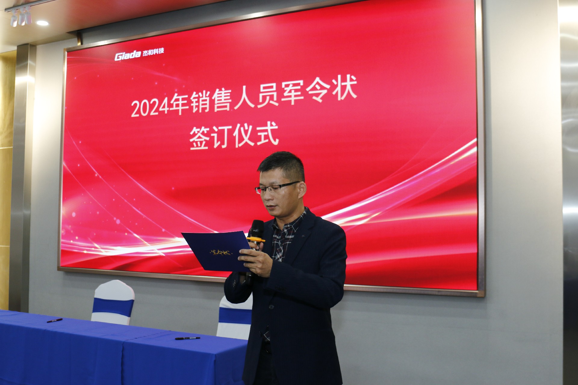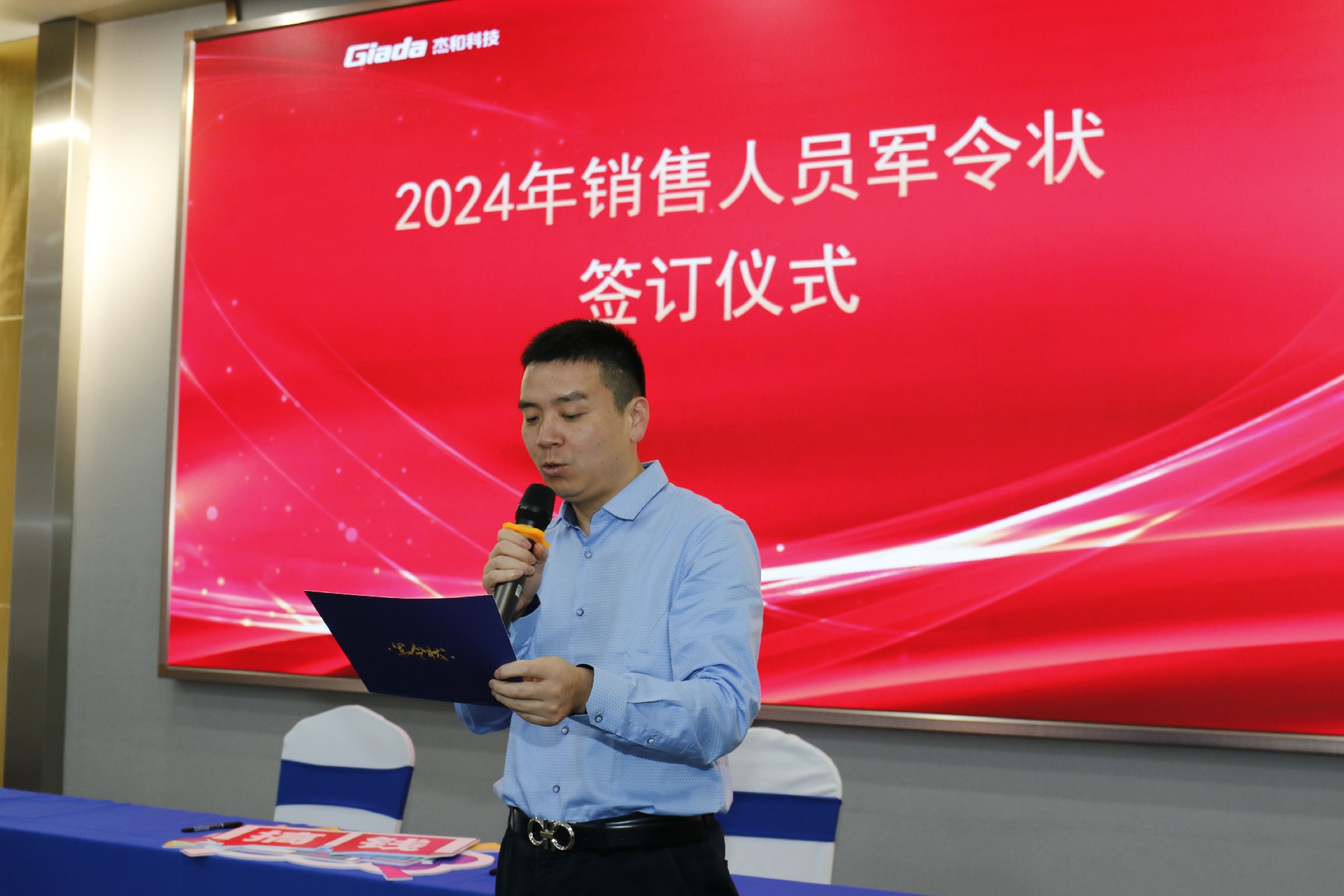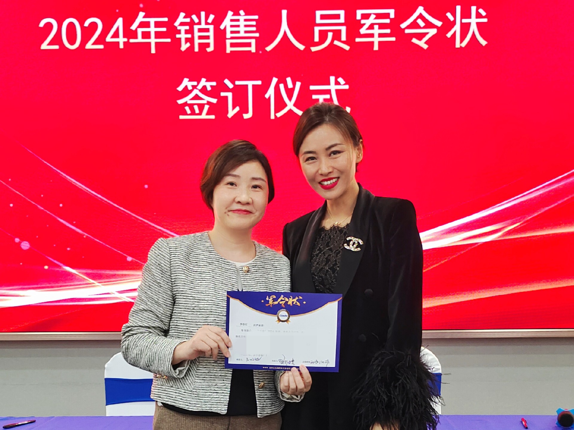 2024公司年度战略目标确立,言出必行,使命必达,国际/国内销售团队为了共同的目标开始军令状签约仪式。一纸军令状,是918博天堂(中国区)官方科技与销售人员的双向承诺,是压力,更是动力。是不破楼兰终不还的决心,更是春风得意马蹄疾,一日看尽长安花的期待。