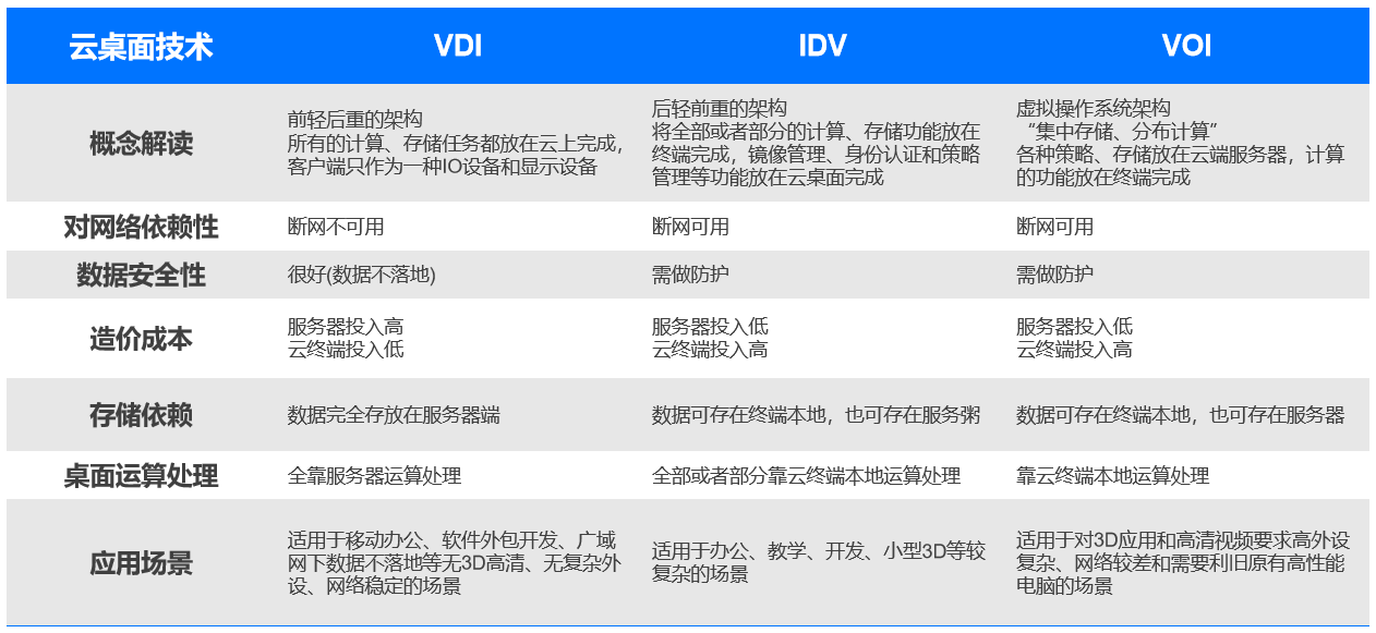 针对传统PC存在的运维成本高、数据保密性差、办公设备携带不便等众多弊端,办公、教育等行业对应用模式提出了新的需求,云桌面技术+云终端的模式应运而生。云终端通过特定的通信协议(通常是指VDI、IDV、VOI、RDS、SPICE等云桌面技术通信协议)来连接云端的系统桌面并显示到前端来,并将云终端的输出输入数据又重新定向传输到云服务器上,实现交互式操作,达到与电脑一致的体验效果。