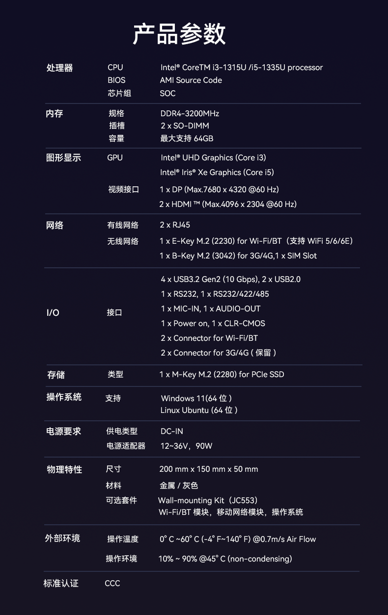 1、918博天堂(中国区)官方AE613采用密封紧凑设计,紧凑设计可以使设备更易于安装在交通场景中的有限空间内,适用于车载、道路监控、交通信号控制等应用场景,该设计有利于导热更有利于散热,并且机器功耗只有15w,能够降低对电力资源的需求,有利于节能减排,符合绿色环保的发展理念,并且较低的功耗意味着可以延长电池的使用时间,提高设备的续航能力;