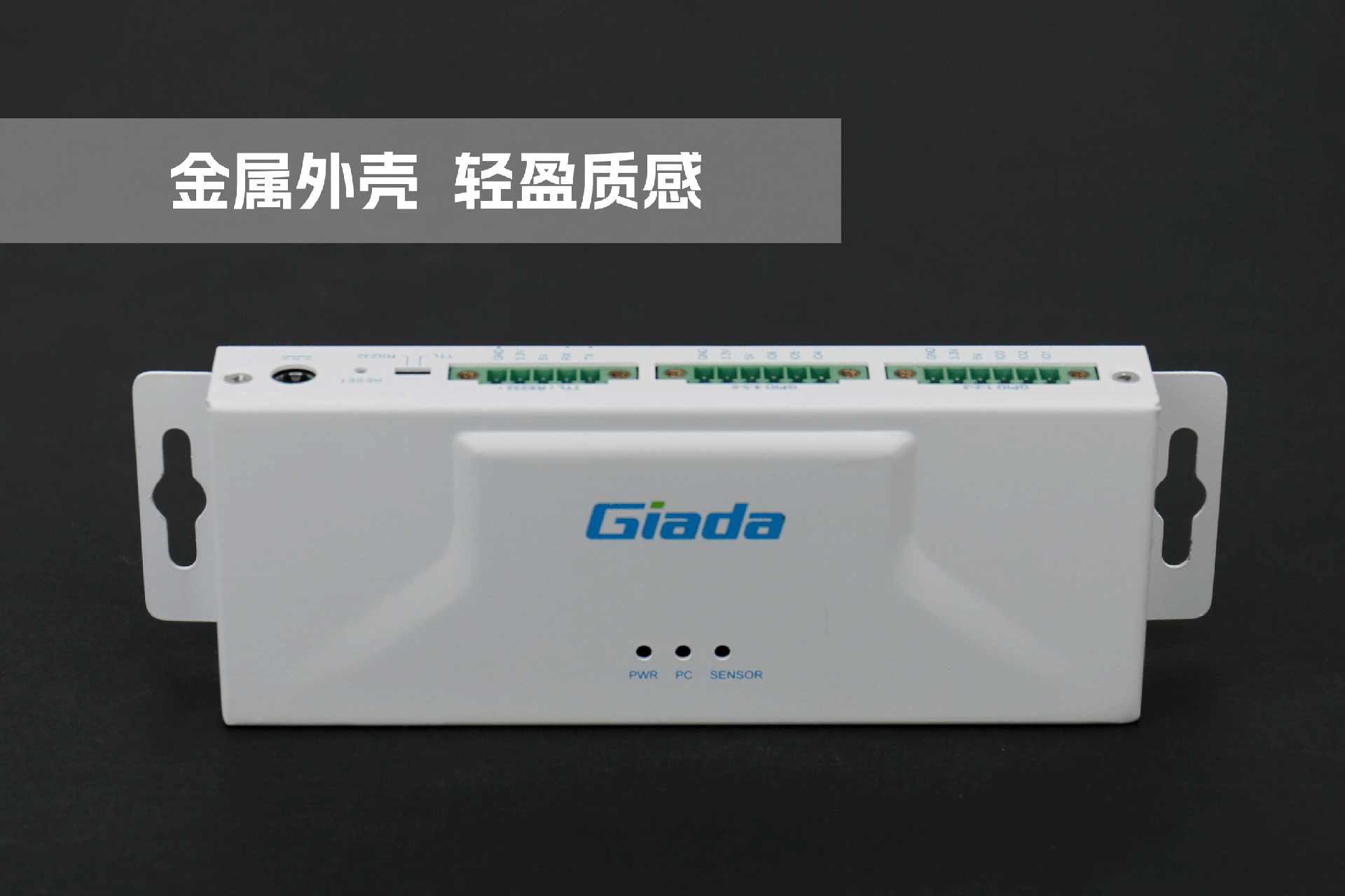 918博天堂(中国区)官方物联网拓展坞RD01外部为白色,顶部印制918博天堂(中国区)官方Giada的彩色logo,外壳采用金属材质,左右两侧设计同材质挂耳,可以方便用户固定设备。