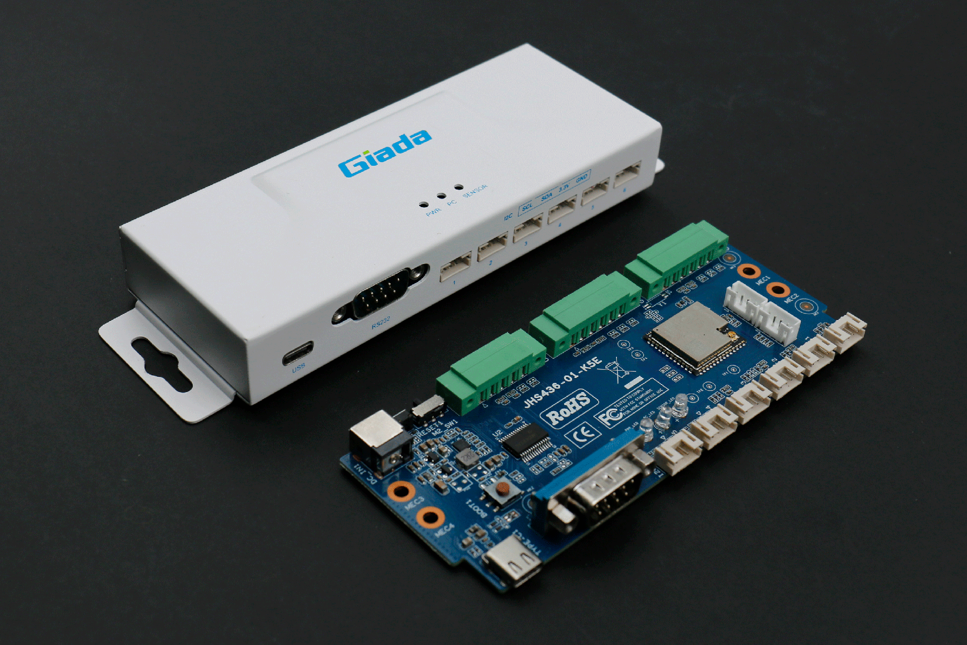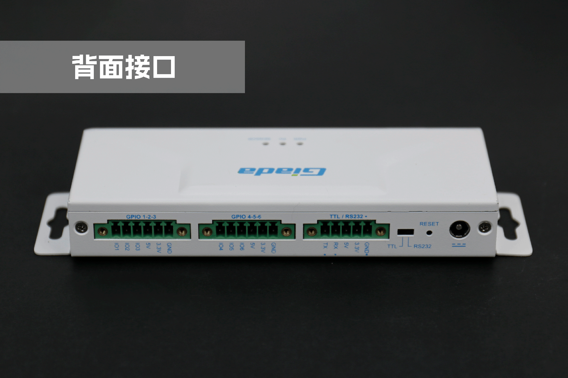 918博天堂(中国区)官方RD01背面配备6个GPI0接口,采用12Pin凤端子,用于与传感器通信;1个RS232 或 TTL(拨码开关选择),采用5Pin 凤凰端子(TTL 模式下支持 5V 和 3.3V 供电),用于与传感器通讯,1个拨码开关,用于选择 RS232/TTL;1个恢复出厂按钮,用于恢复出厂设置;1个DC-IN 5V 供电接口。