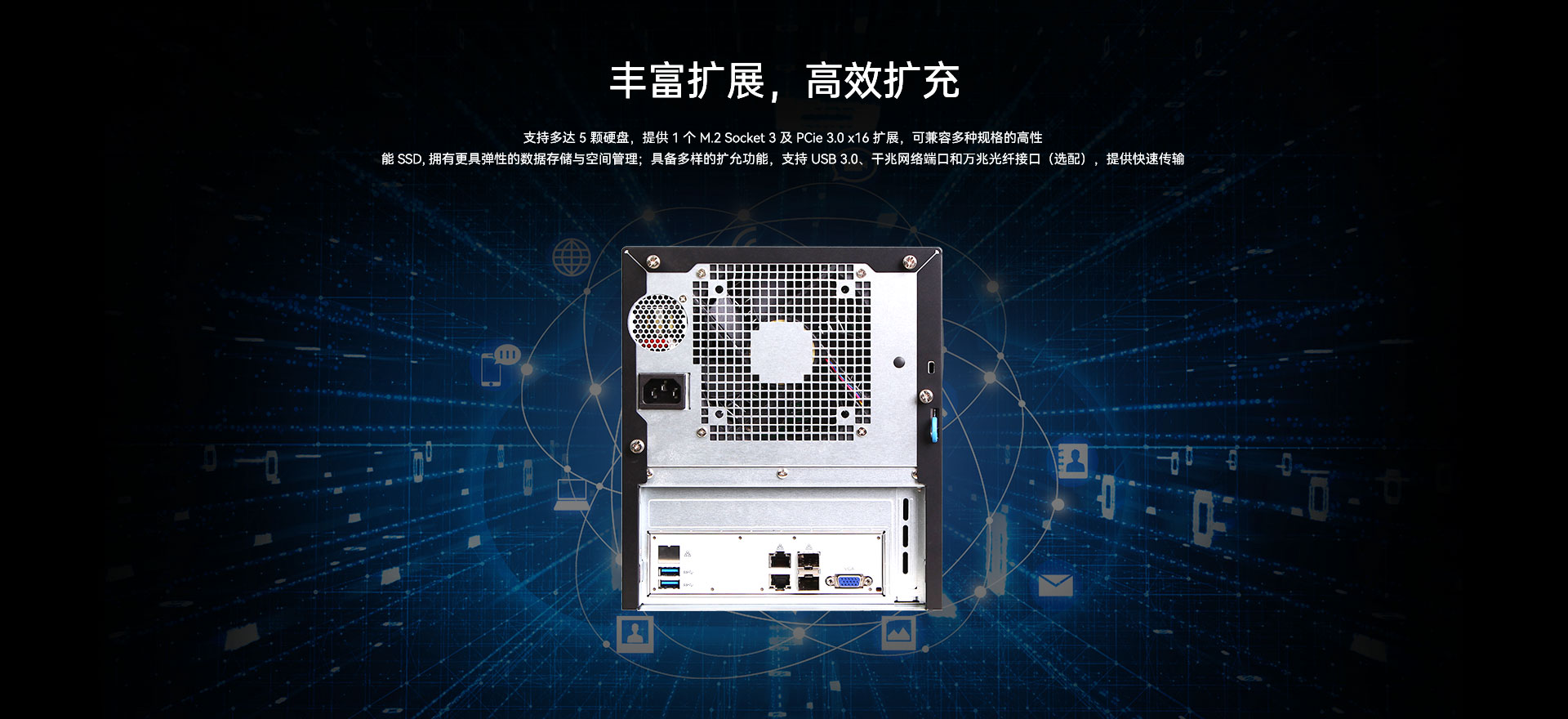 | 存储 | 接口1 | 4 x 3.5英寸SATA硬盘(支持热插拔)1 x 2.5英寸SATA硬盘(不支持热插拔) |